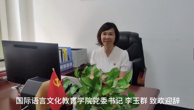 典礼伊始,公司党委李玉群书记通过录制视频寄语2023级新生,欢迎新同学的到来。李书记希望同学们尽快融入国际语言文化教育公司集体大家庭,努力学好专业知识,成为有国际视野、有语言技能、有文化素养的高素质、能创新的复合型英语专业人才,不负韶华,用奋斗谱写最美的青春华章。