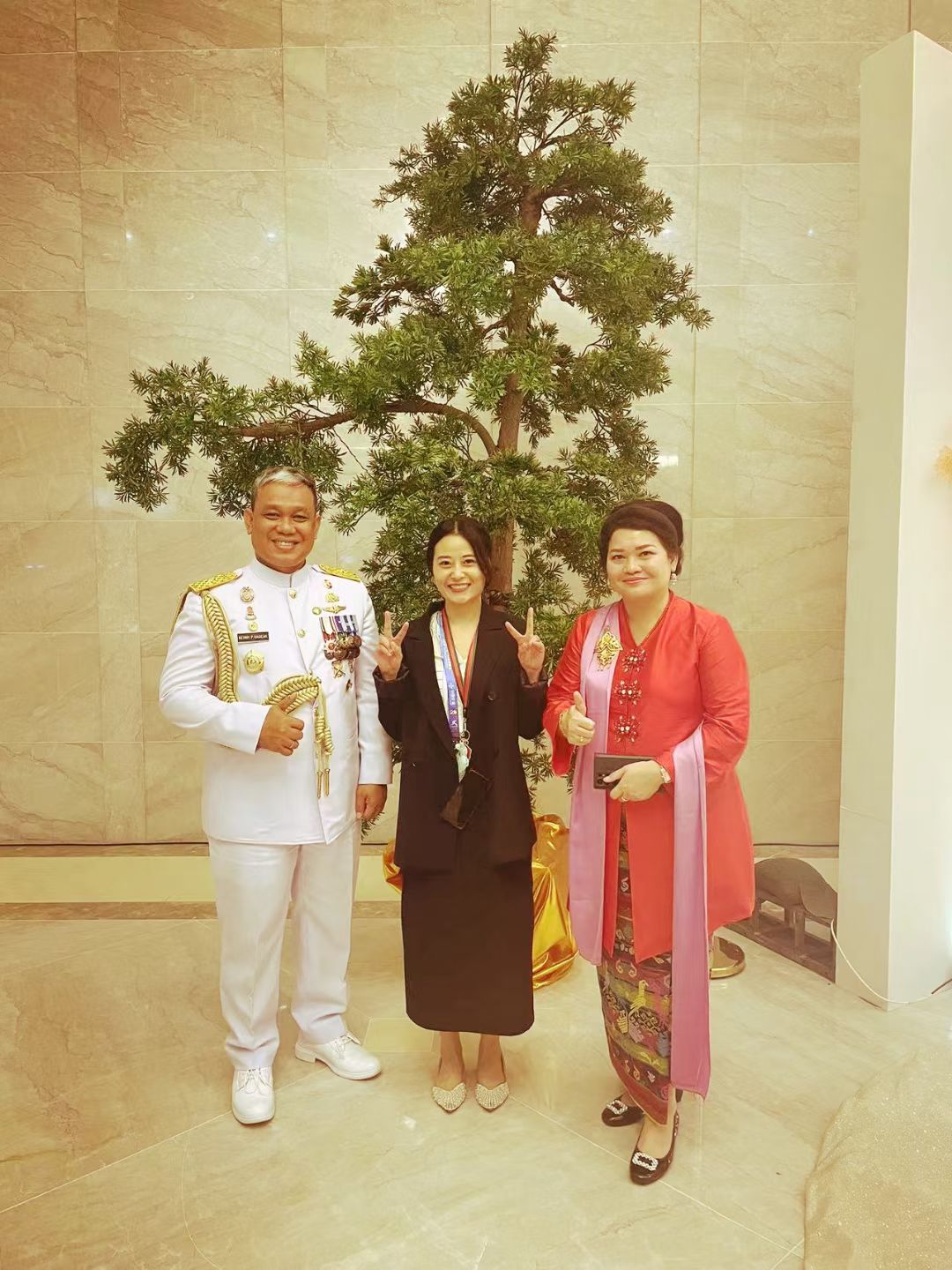 赵梅鹃老师与缅甸仰光省商务部部长、自然资源部部长合影。