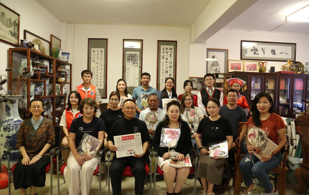 2024级翻译专硕班吕义宏(后排右二)、熊滢滢(后排右三)参与百色市书画院参观翻译服务