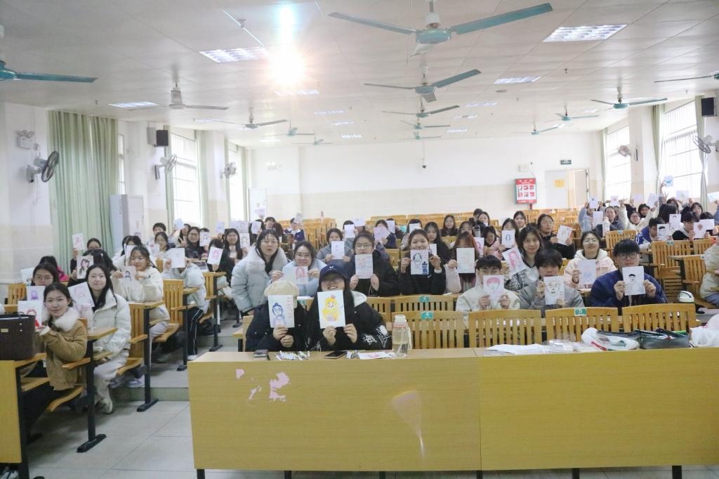 在实践操作中,同学们在老师的引导下,通过绘制自画像、梳理自身及同伴优点等艺术表达方式,深入探索内心世界。随后运用专业语言能力,用英语书写并阐释自身特质,同伴间亦是用英语相互表达对方的优点并给予鼓励性的拥抱,使同学们在跨文化表达的实践中增强自信。活动特别设置优点互评环节,同学们上台展示所绘自画像,用英语完整介绍自身与同伴优点,通过同伴的积极反馈强化团队认同,展现新时代员工骨干“自信担当、全面发展”的优良风貌。