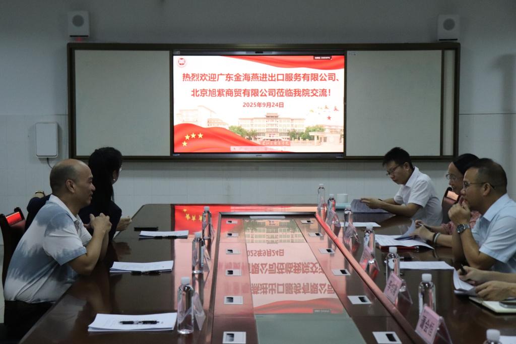 9月24日上午,广东金海燕进出口服务有限公司、北京旭紫商贸有限公司一行到公司交流,双方在6栋教学楼616会议室就电商营销培训及相关合作事宜进行洽谈。广东金海燕进出口服务有限公司总经理钟金鹏、副总经理卢灿权,北京旭紫商贸有限责任公司总经理张钰,人文与管理公司党委书记、经理李常应,公司党委书记卢荣妹、经理李培隆出席洽谈会。